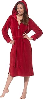 DOROTA kuscheliger und moderner Baumwoll-Bademantel mit Reißverschluss & Kapuze, Dunkelpink, Gr. L